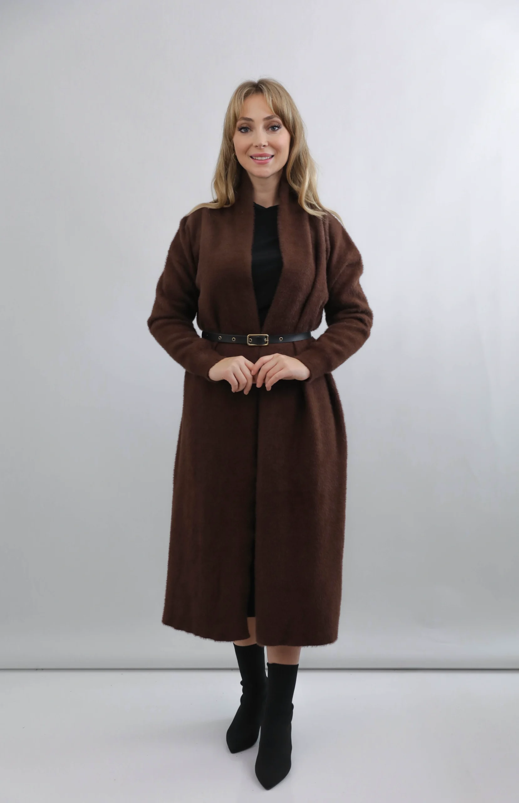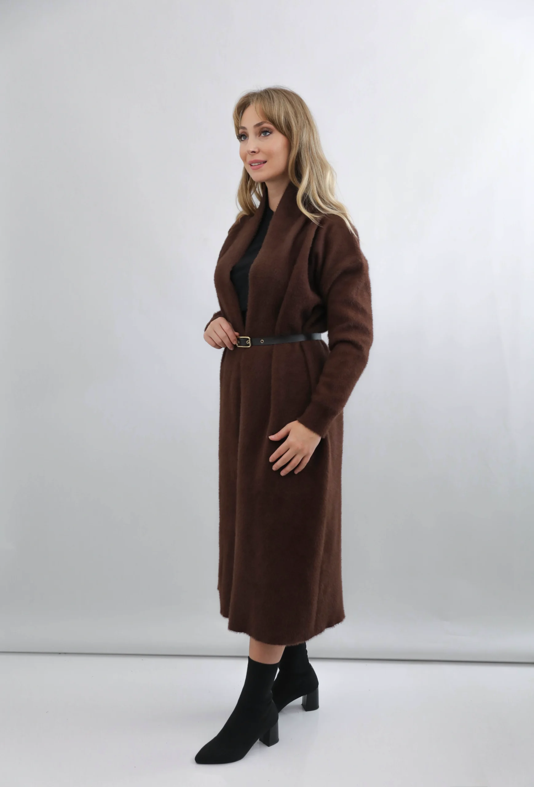 Kemerli Uzun Triko Hırka modeli; modern, sade ve zarif tasarımıyla gardırobunuzun en işlevsel parçalarından biri olmaya aday.