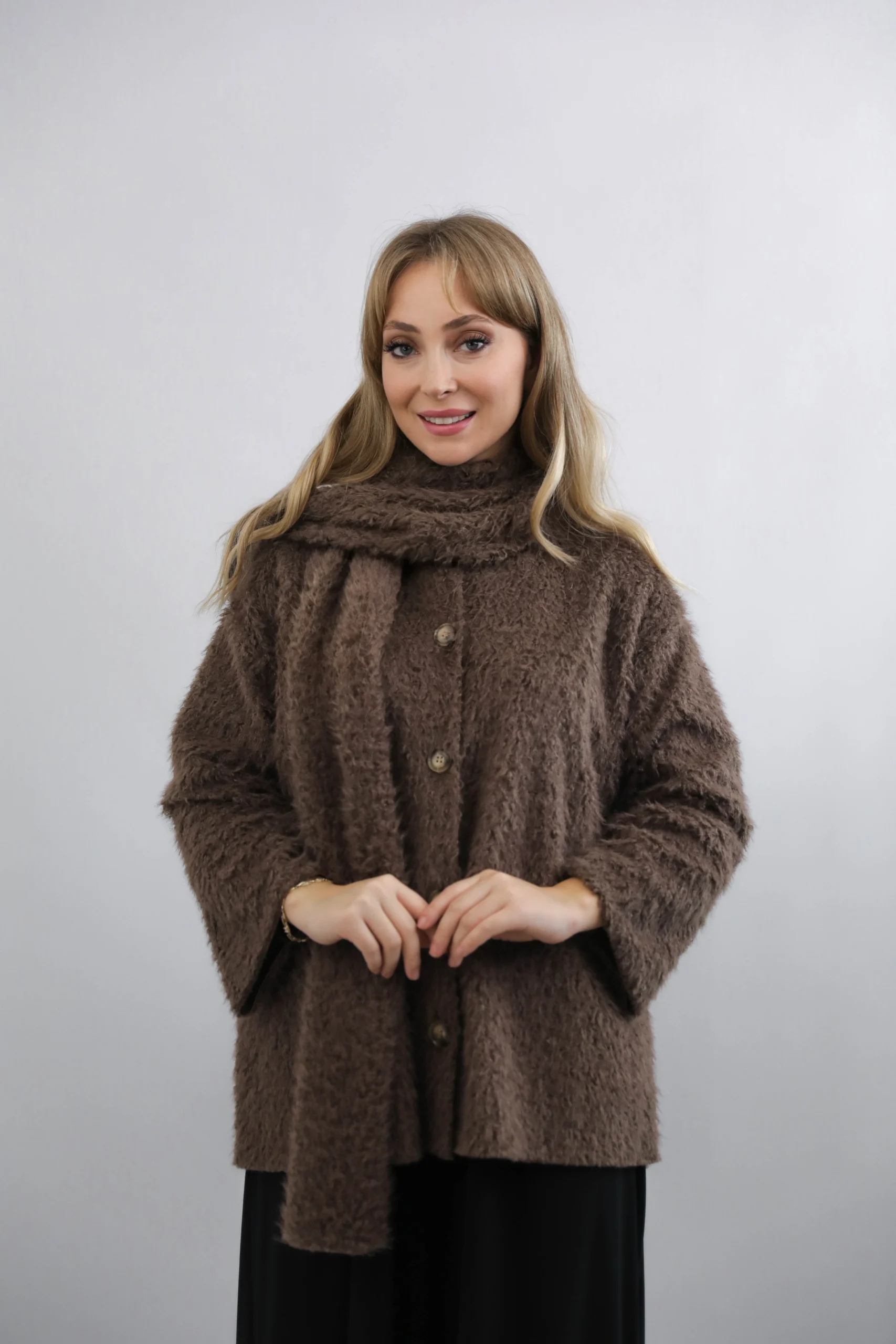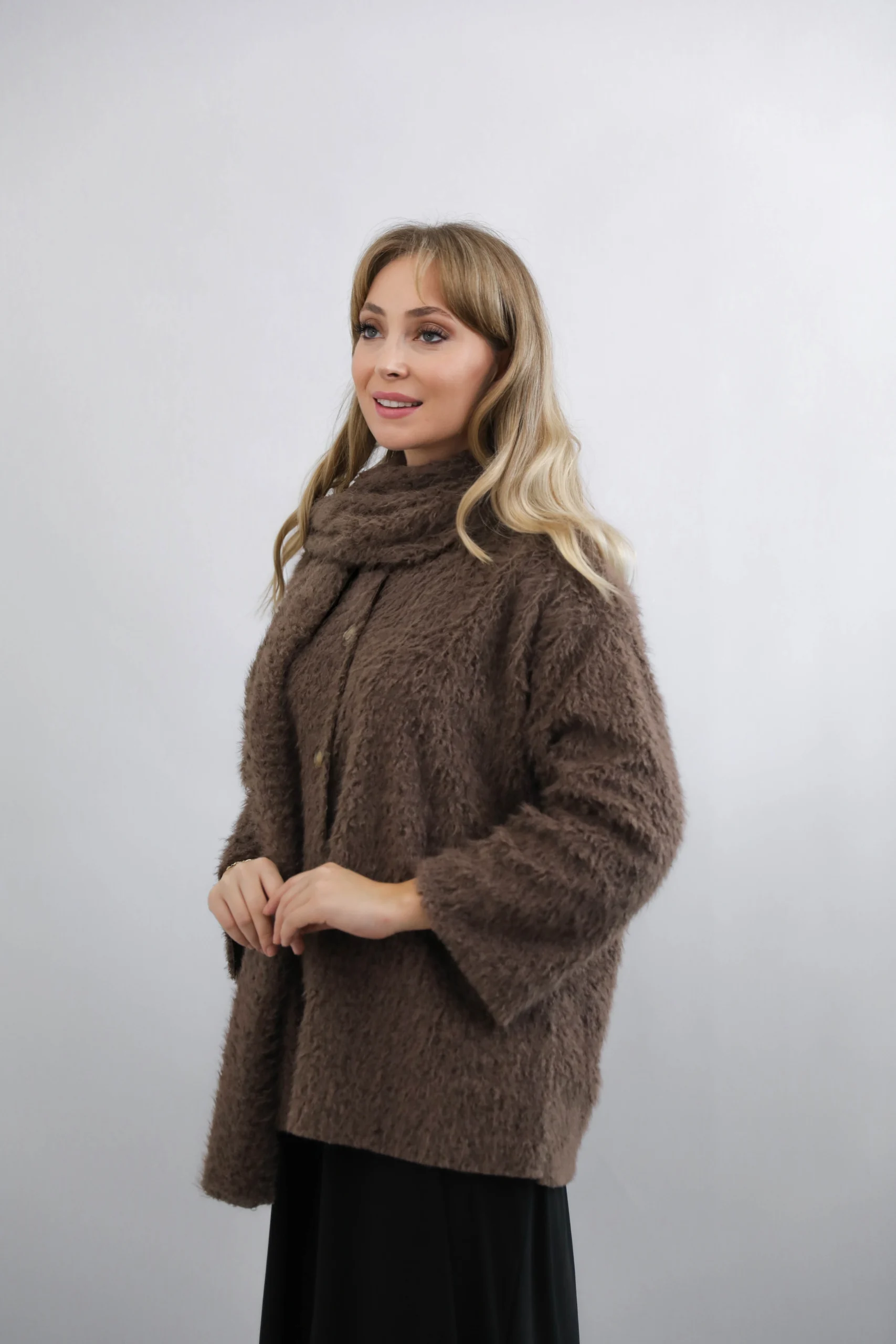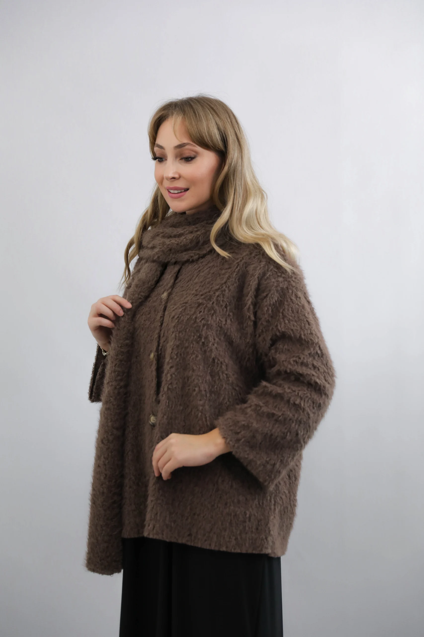 Yumuşacık peluş dokusu, geniş kesimi ve şal yaka detayıyla hem şık hem de sıcak tutan bir modeldir. Düğme kapamalı yapısı ve dökümlü duruşuyla günlük kombinlere rahatlık katar. Soğuk havalarda konforlu ve zarif bir tercih arayanlar için idealdir.