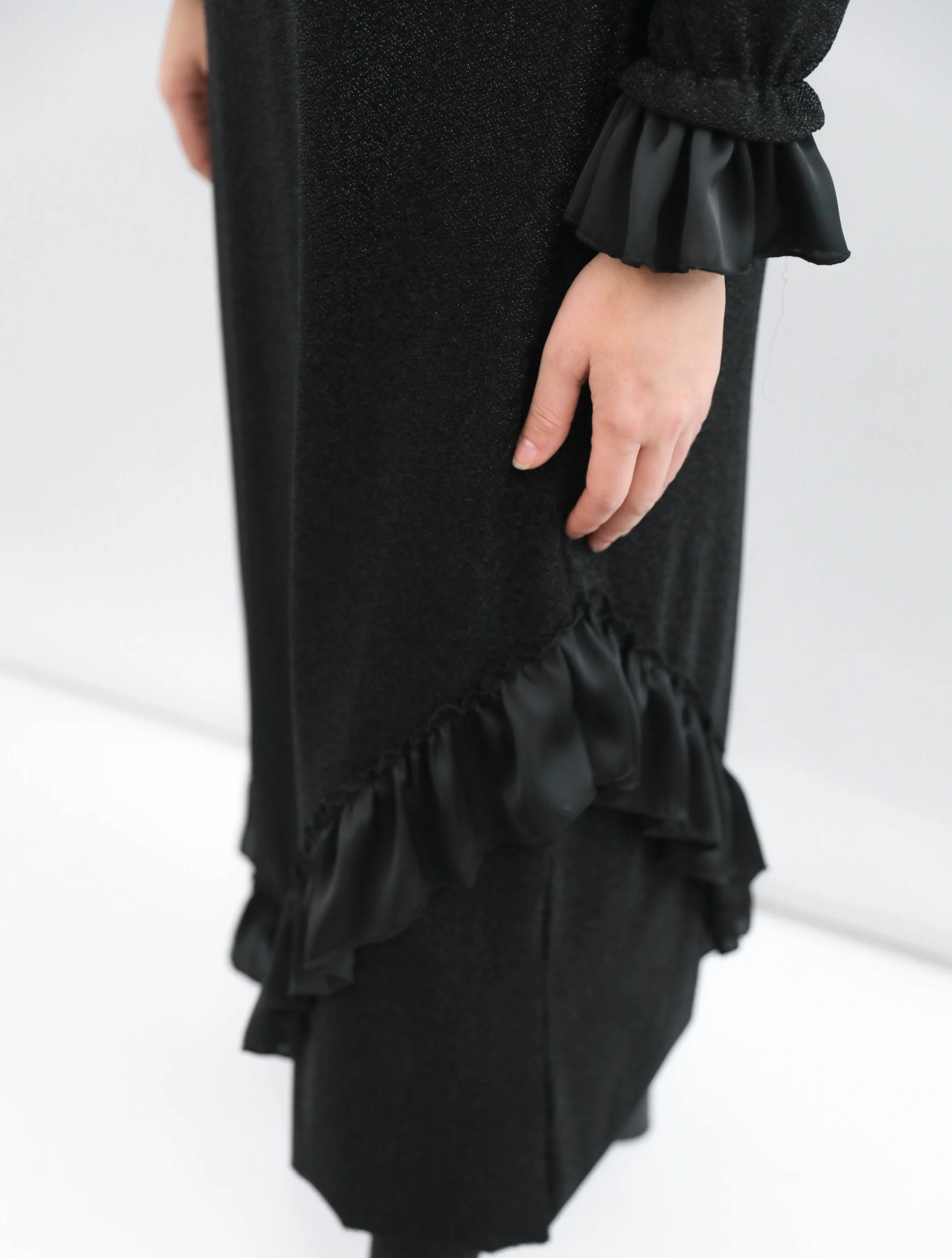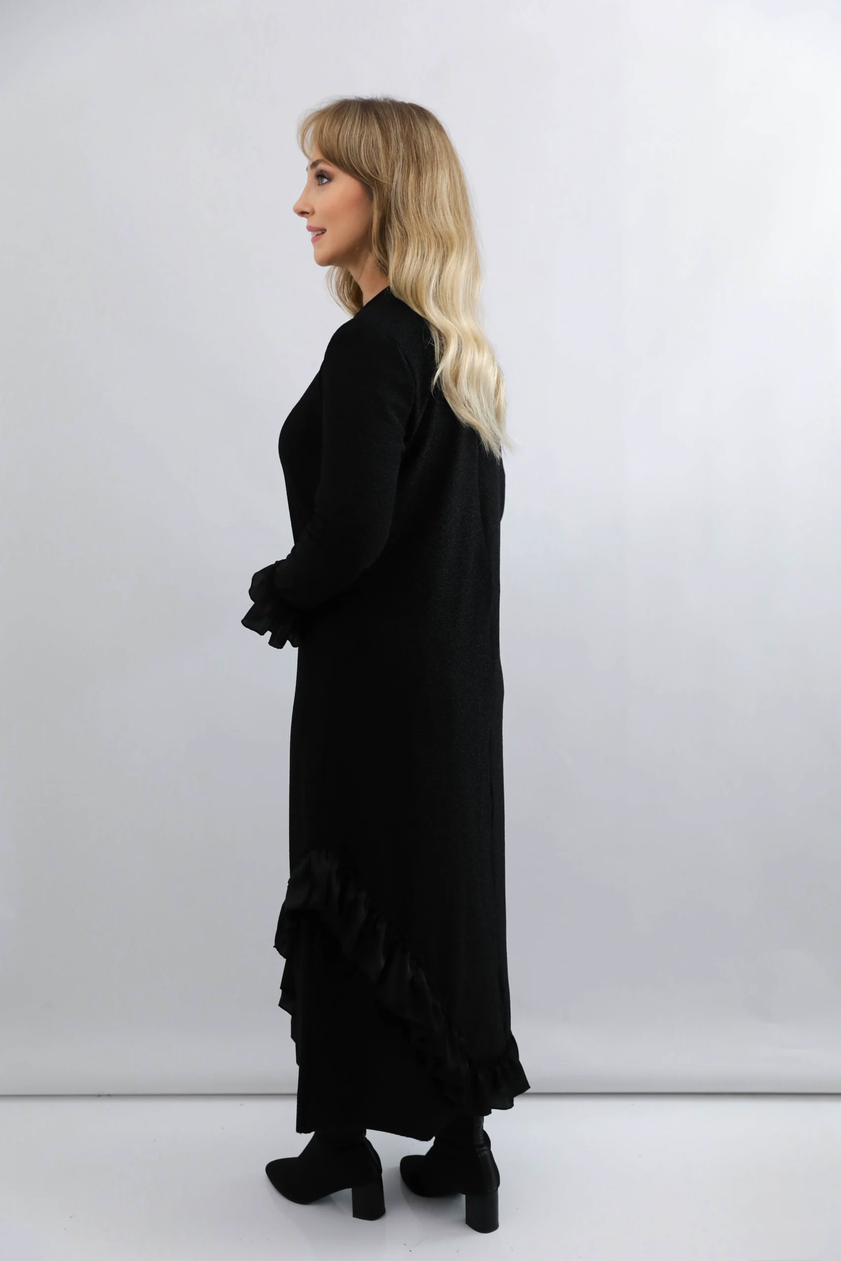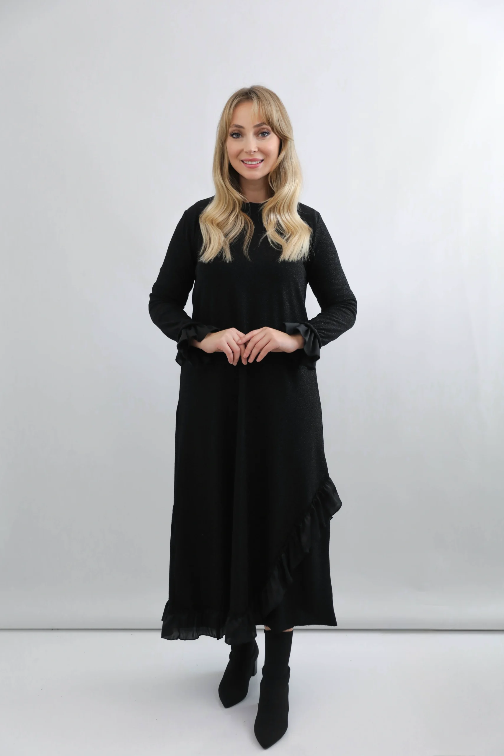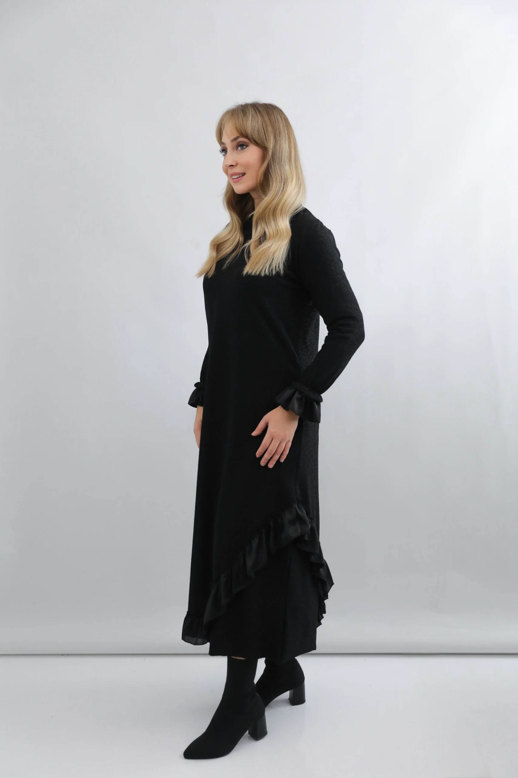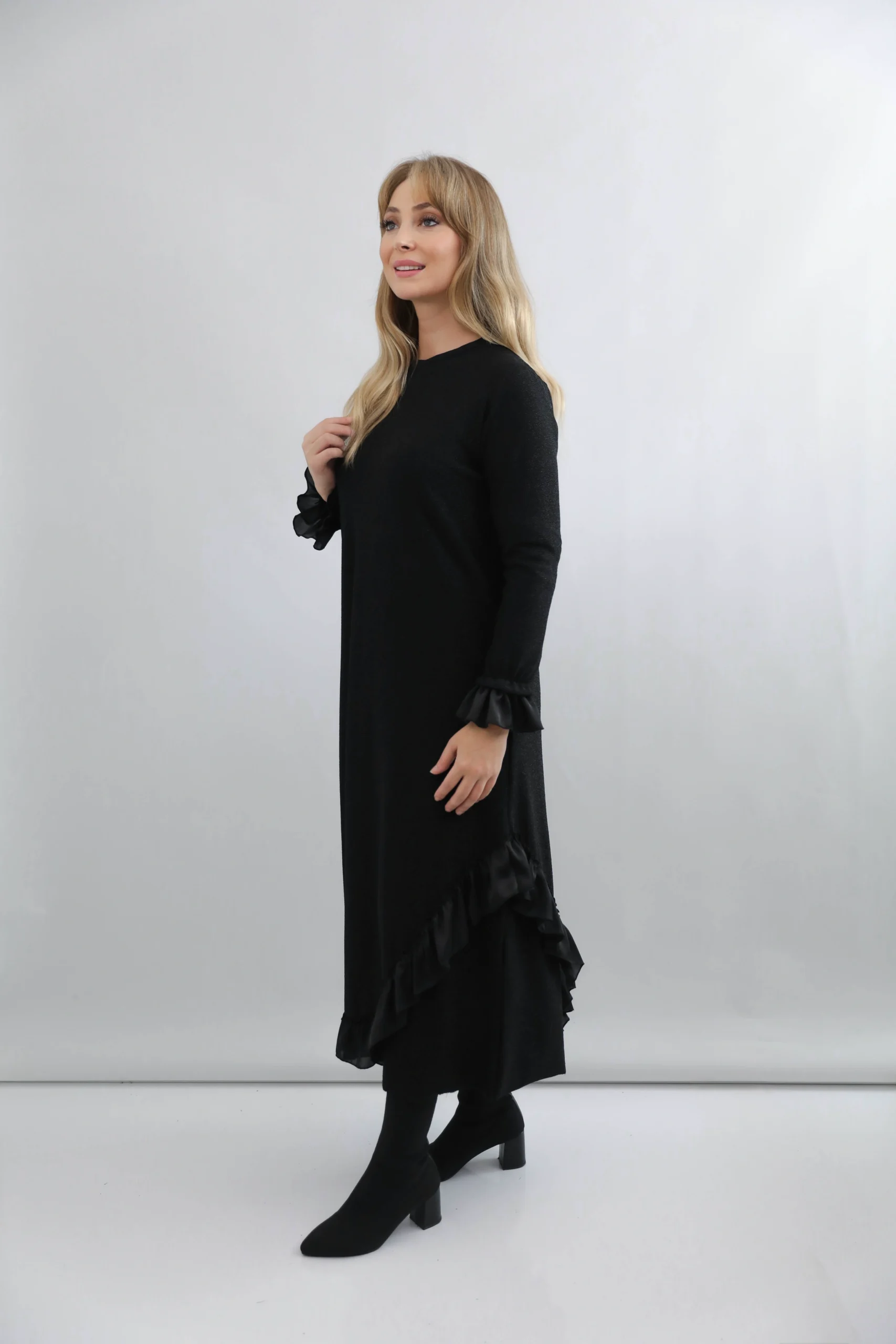 Siyah Volan Detaylı Elbise